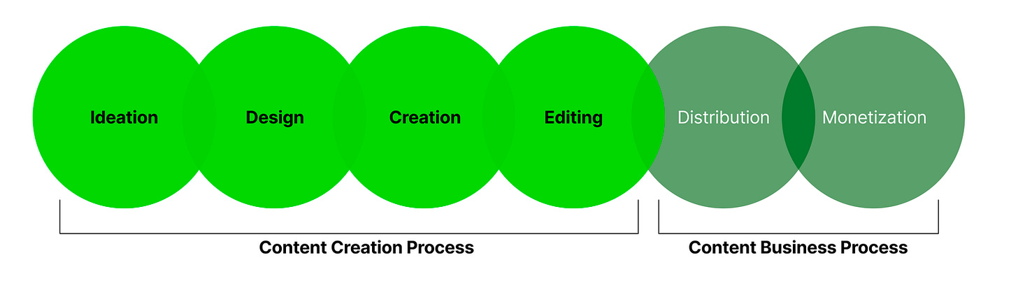 Content Creation Process는 콘텐츠 생산, 제작에 초점을 맞추고 있으며, Ideation → Design → Creation → Editing로 구성됩니다.